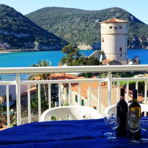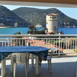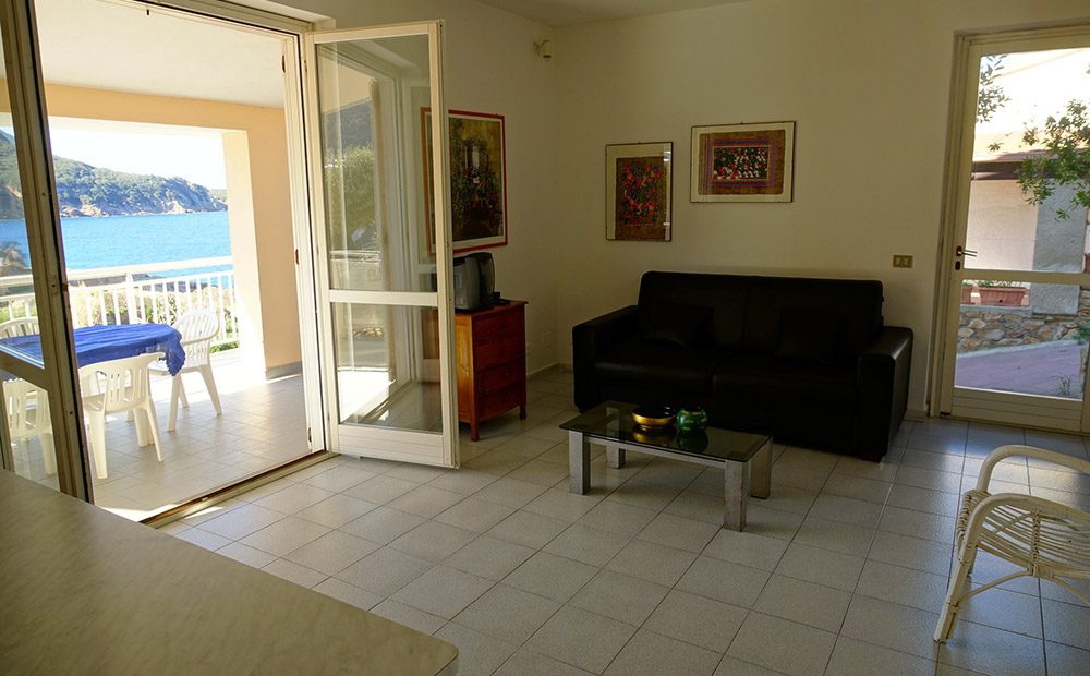 Appartamento al primo piano con splendida vista sul golfo di Campese composto da terrazza attrezzata per mangiare all’aperto, soggiorno con angolo cottura e divano letto matrimoniale, bagno, camera matrimoniale, camera a due letti, aria condizionata nelle camere, TV, lavatrice esterna, posto auto. Distanza dal mare 200 metri.