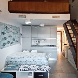 Appartamento in residence, quinto livello, composto da balcone attrezzato con splendida vista mare, soggiorno con angolo cottura, nicchia con letto a castello, bagno, camera matrimoniale con letto rotondo, soppalco aperto sul soggiorno con letto matrimoniale e secondo bagno.