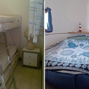 Ideale per una famiglia con figli. Due bagni. Sei posti letto in totale. L’appartamento dista 30 metri dal mare. Market sotto il residence.