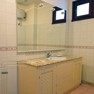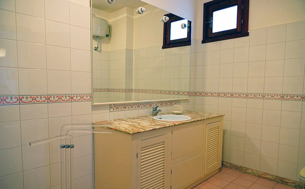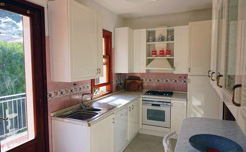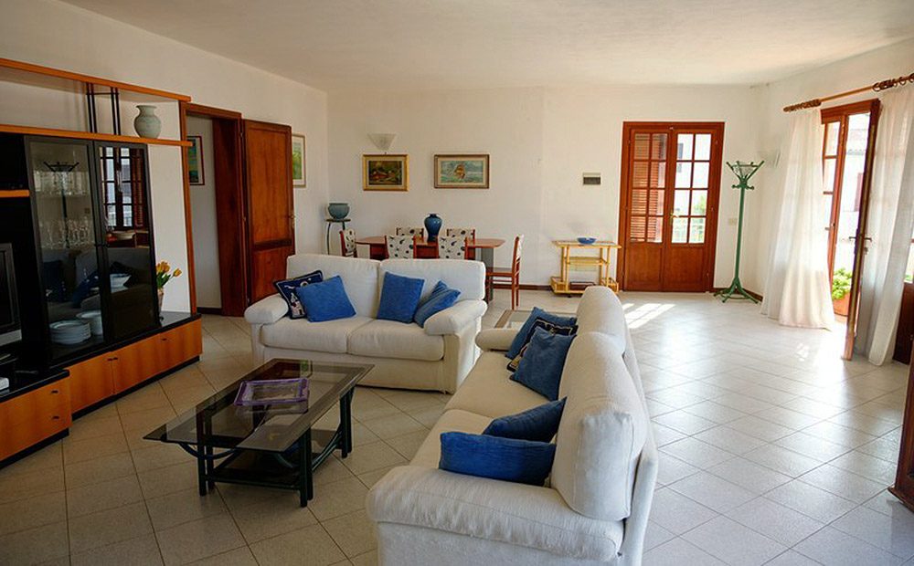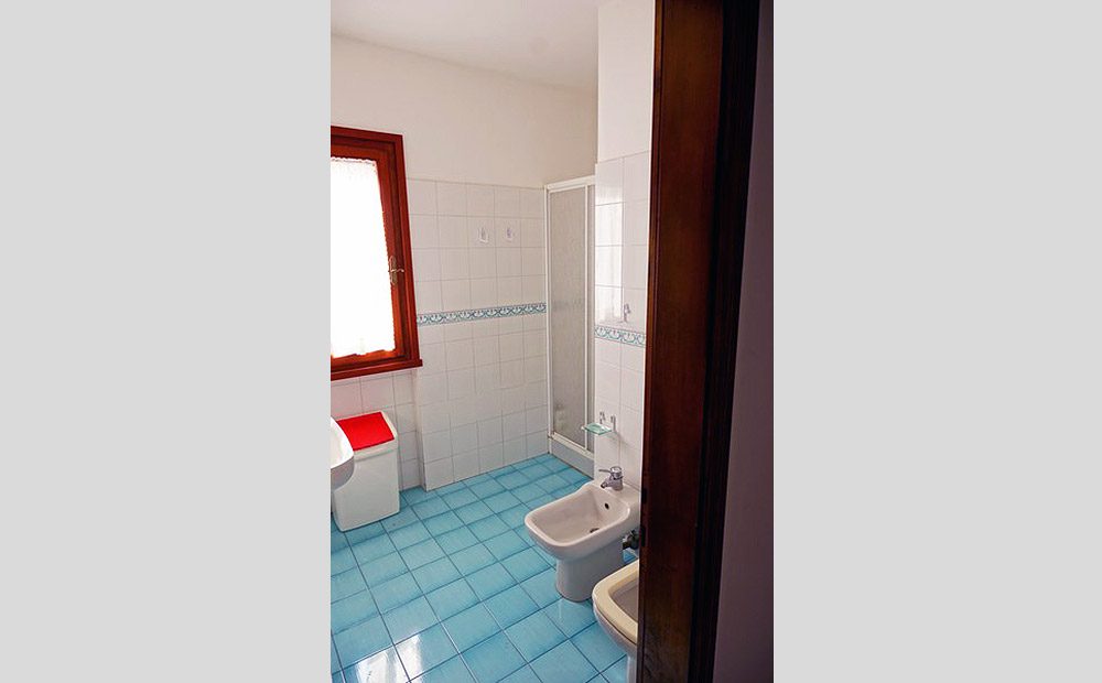 A part of villa with composed by equipped sea wiev terrace for eating out, living room with double sofa bed, kitchen, bathroom, bedroom with double bed with ceiling fun and second bathroom, bedroom with bunk bed plus pull-out third bed. It is provided with small swimming pool shared with the near apartment, washing machine, dishwasher, external shower, TV, two parking spaces. It is 200 metres far from the beach.